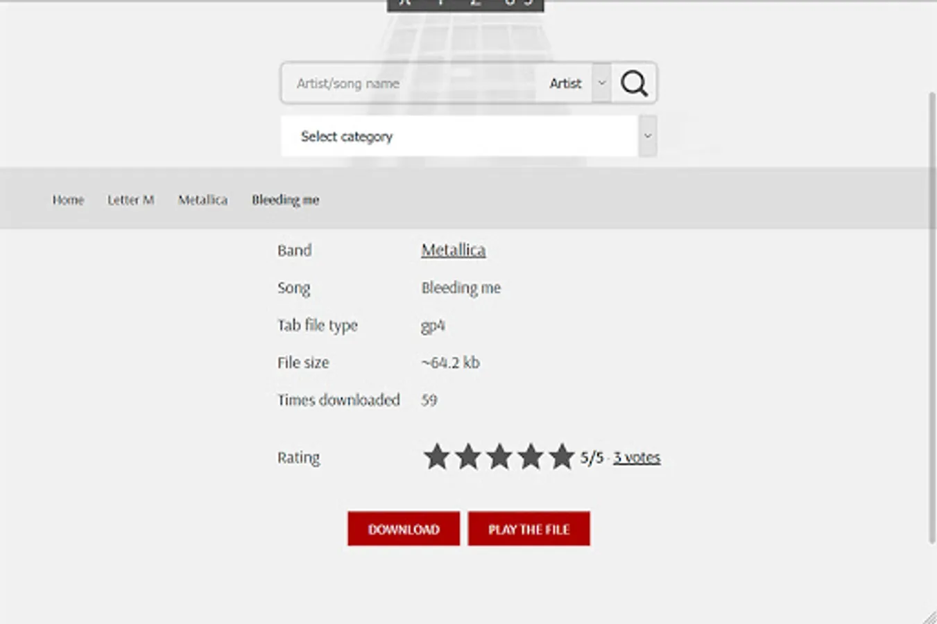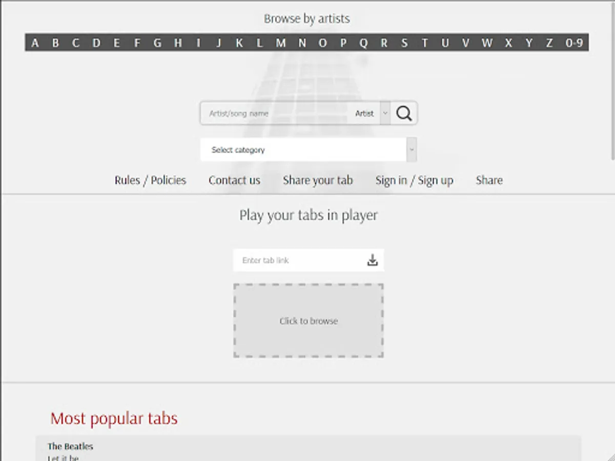 You can download the available tabs by browsing through the inventory or by searching through the form above. You can share your own tabs by clicking the "Share tab" in the main menu (requires registration).