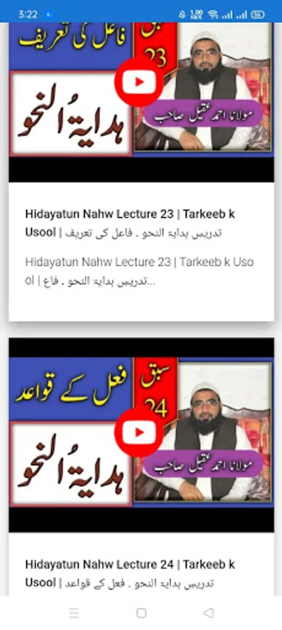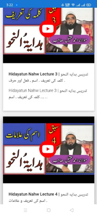 اگر آپ آن لائن ہدایۃ النحو گھر بیٹھے پڑھنا چاہتے ہیں تو یہ ایپ آپ کے لیے بے حد کام کی ہے ، اس میں مولانا احمد عقیل صاحب نے ہدایۃ النحو کو سبقا سبقا آسان انداز میں پڑھایا ہے ، پہلے ہر سبق کی عبارت پڑھی ہے ، پھر ترجمہ کیا ہے ، پھر مختصر اور ضروری تشریح پیش کی ہے ، علاوہ ازیں ہر ویڈیو میں آپ کو ہدایۃ النحو کی عبارت بھی لکھی ہوئی نظر آئے گی۔