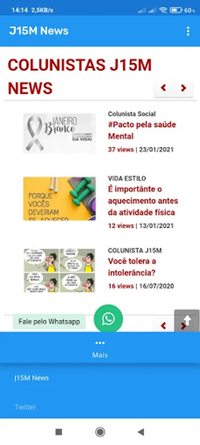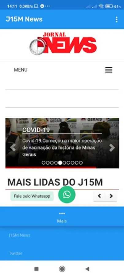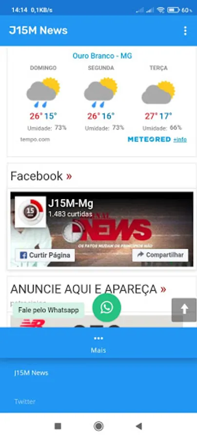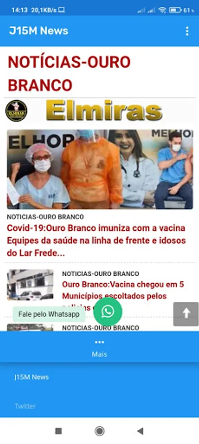 J15M-NEWS (stylized as Jornal Virtual de Ouro Branco) is a Brazilian journalistic communication vehicle, produced and displayed on Social Networks and in the domain www.j15m.com.br. On April 4, 2021, we will celebrate our first year of existence, and under the command of Jota B Silva we are close to 100 thousand visits. Thanks friends, thanks to Ouro Branco and the entire Alto Paraopeba region.