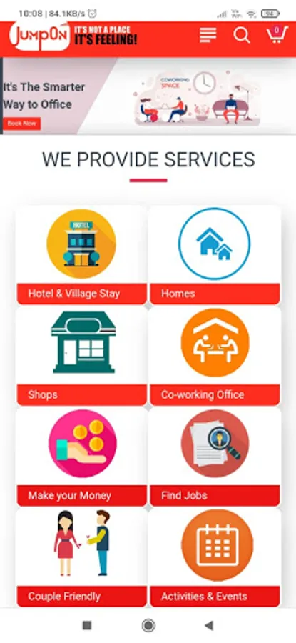JumpOn - Book Hotels / Holiday Village stay / Real state /Co-Working office /Make your Money/ Events /Jobs & More