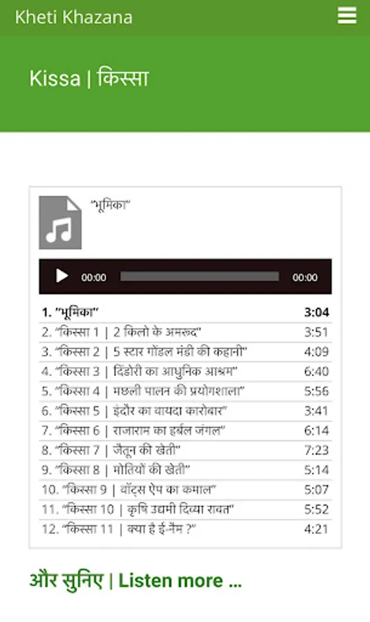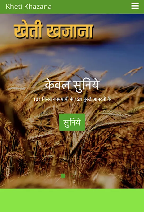 "121 Kisse Kamyabi Ke, 121 Nuske Aamdani Ke” is the first audio book available in the website www.khetikhazana.com. First 11 stories are placed in the website free of cost, as a glimpse of further stories and the whole book. After the registration and making payment all the stories of the book will be available in the website.