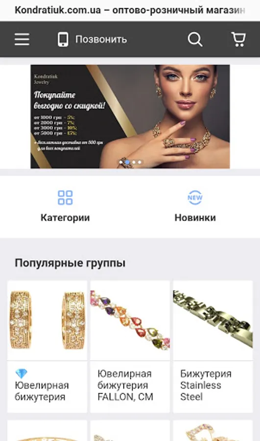 Kondratiuk.com.ua - wholesale and retail online store of beautiful and high-quality jewelry. We offer products from well-known manufacturers - proven not only by time, but also by thousands of buyers. Such as XUPING, FALLON, Stainless steel and others. We are an official dealer, and therefore the site contains the best offers for models and prices. When making purchases from us, you can be sure of the originality and quality declared by the manufacturer.