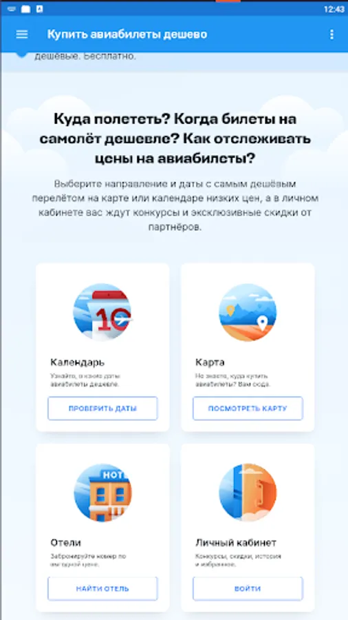 If you are planning a trip, traveling in Russia or abroad, Aviasales will help you to book and buy cheap air tickets. The application will always come in handy - whether you are going on vacation or on vacation, on a business trip abroad or to a neighboring city to visit your family.