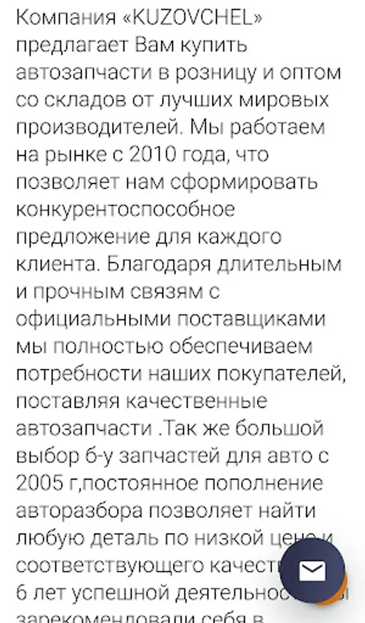 The KuzovChel company invites you to buy auto parts at retail and wholesale from warehouses from the world's best manufacturers. We have been on the market since 2010, which allows us to form a competitive offer for each client. Thanks to long-term and strong relationships with official suppliers, we fully meet the needs of our customers, supplying high-quality auto parts. There is also a large selection of used auto parts since 2005, constant replenishment of auto-analysis allows you to find any part at a low price and of appropriate quality.