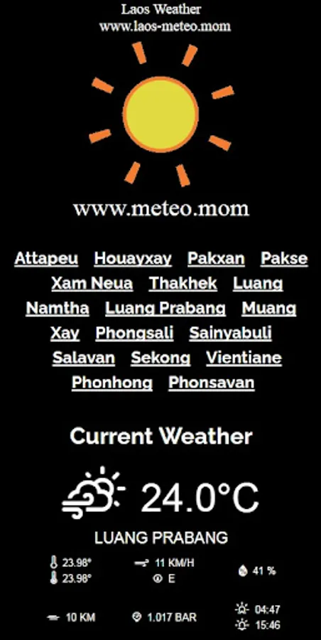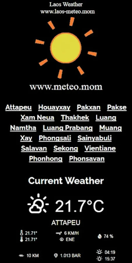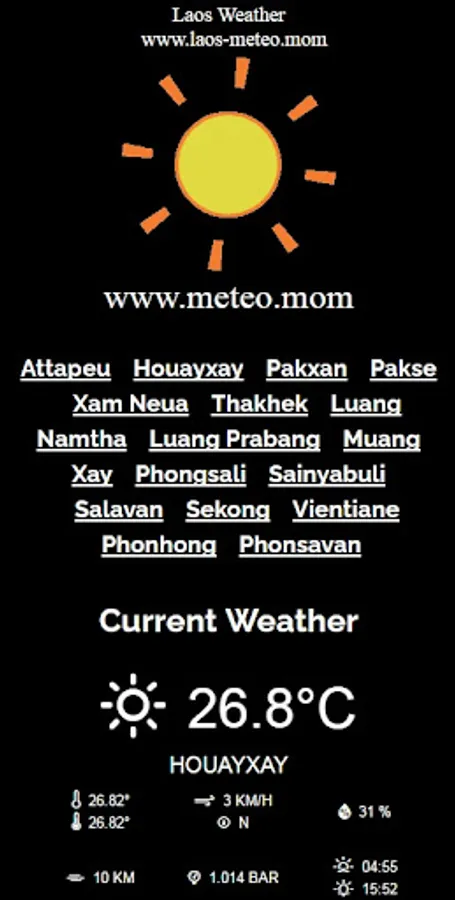 Weather in Laos is a mobile weather application free of charge, with an ergonomic and modern design to provide the best user experience and high readability of the weather information.