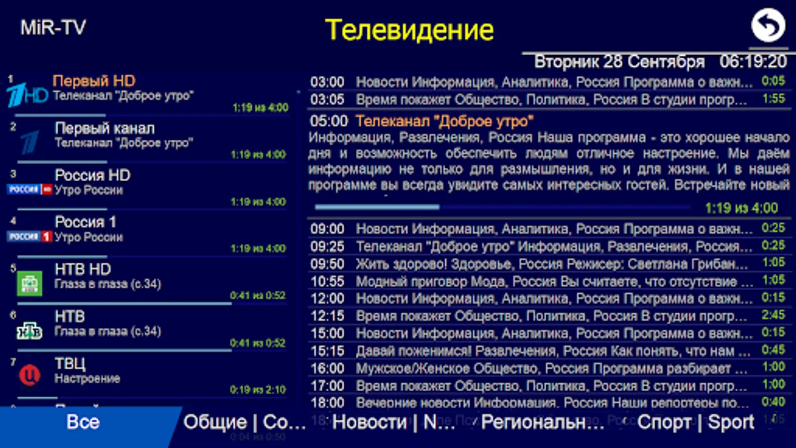 After paying for the subscription, you will get access to watching Mir-TV television on more than 1000 channels up to 4 TV devices.