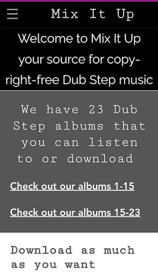 You won’t have to worry about getting your stream taken down or hit with copy right violations. So, download all of them. You can download as many songs as you want. The only thing we ask is if you can please leave a review. That would help us out a lot. We also have many more apps. All DMCA safe. Just Search for our Developer account “MySwitchport.com” and you should be able to find all our different Apps. Here is a small list of the Genres.