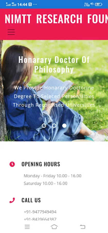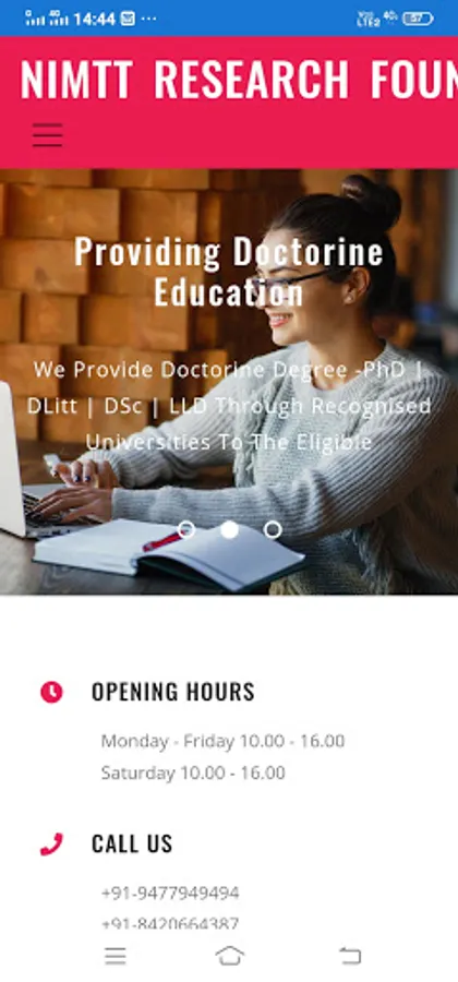 NIMTT RESEARCH FOUNDATION IS A DIVISION OF NIMTT CONDUCTS RESEARCH COURSES -MPHIL , PHD , DLITT , DSC AND LLD CERTIFIED BY UGC GOVT OF INDIA RECOGNIZED UNIVERSITIES .THIS DIVISION IS HEADED BY A HOD RESEARCH AND WE HAVE MORE THAN 50 NOS EMPANELED GUIDES FROM DIFFERENT REPUTED UNIVERSITIES OF INDIA