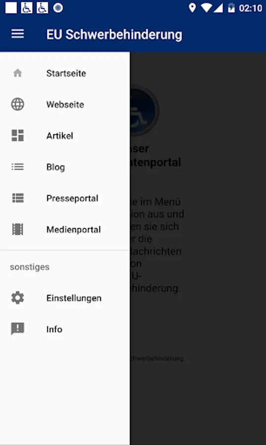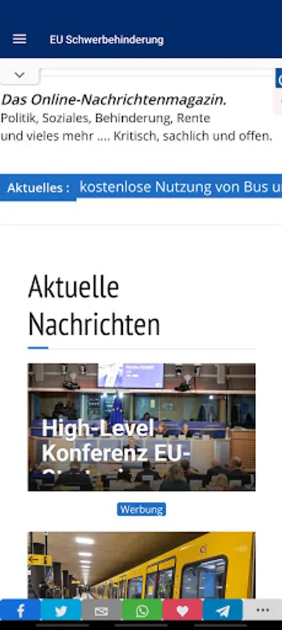 2. to access the web resources (blog, press portal, media portal) from our news site www.eu-schwerbehinderung.eu. We want to make it easier for all people with disabilities to access our news and information. Of course, people without disabilities are invited to make the information easier to access with this app. - TO USE THIS VERSION, WE RECOMMEND THE PREMIUM VERSION OF THIS APP