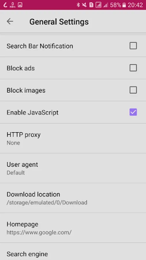 NOTE :> If the homepage shows automatic english news, go to the general settings of the browser and change the DEFAULT of the homepage and select the bookmarks.