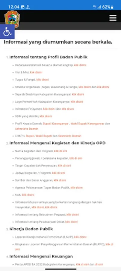 The PPID Karanganyar application provides mandatory information that must be made available by Public Bodies. This application can be accessed by the wider community which is expected to be able to meet the need for information.