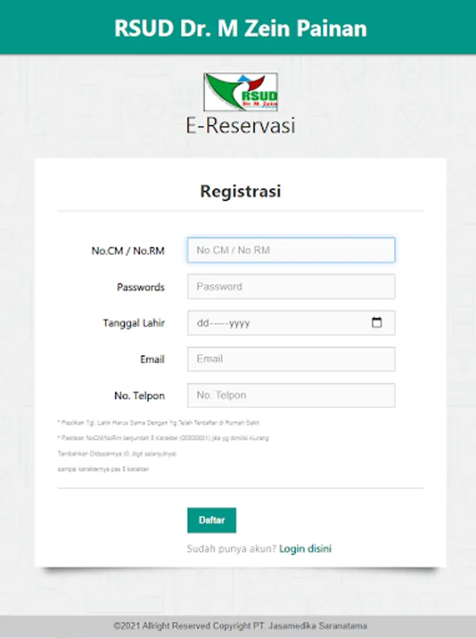 Online Registration Application for RSUD Dr. Muhammad Zein Painan is an online registration application that aims to make it easier for patients who want to register at RSUD Dr. Muhammad Zein Painan.