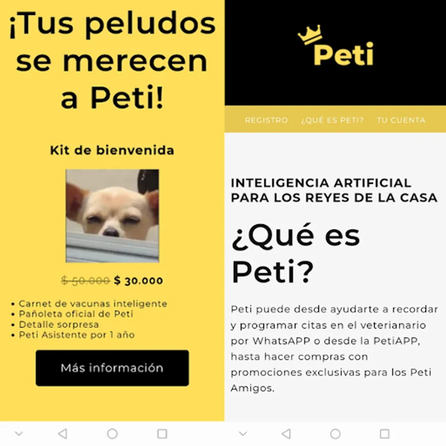 Peti is much more than a pet assistant, we are a team that loves michis and puppies, which is why this initiative to put the latest technology at the service of the kings of the house was born.