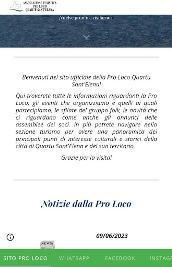 With the Quartu Sant'Elena Pro Loco app you can stay updated on all the events that the Pro Loco organizes and those in which it participates, including events related to the Folk Group, meetings of members, social outings and festivals.