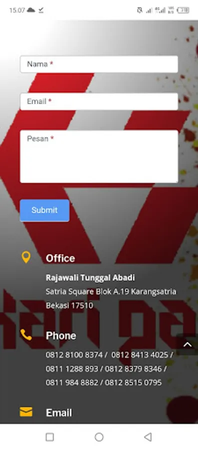 PT. Rajawali Tunggal Abadi at the address Satria Square Block A.19 Karangsatria, Bekasi 17510, West Java, Indonesia. While the workshop is located in East Bekasi, and for project work locations, in general, the location of the building or work is located.
