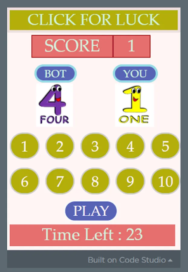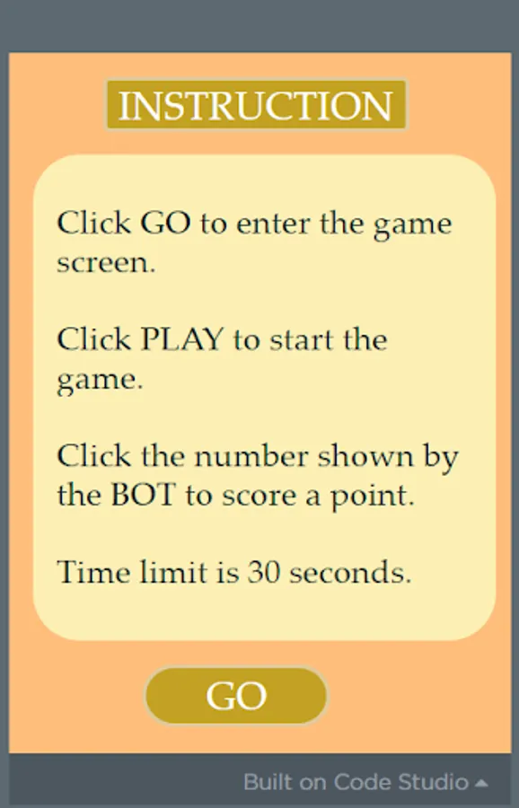It is a racing game against the BOT. Click the number shown by the BOT as fast as you can and score points. Simple and fun game to play.