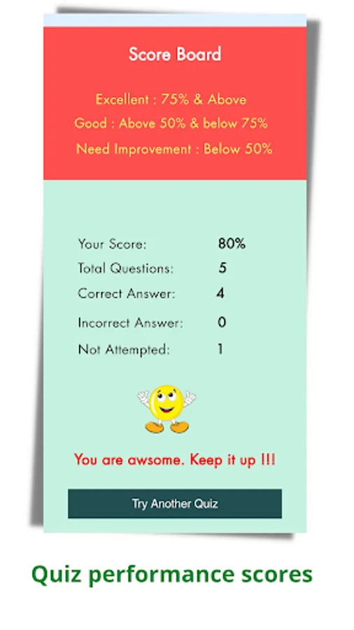 * Quiz score summary