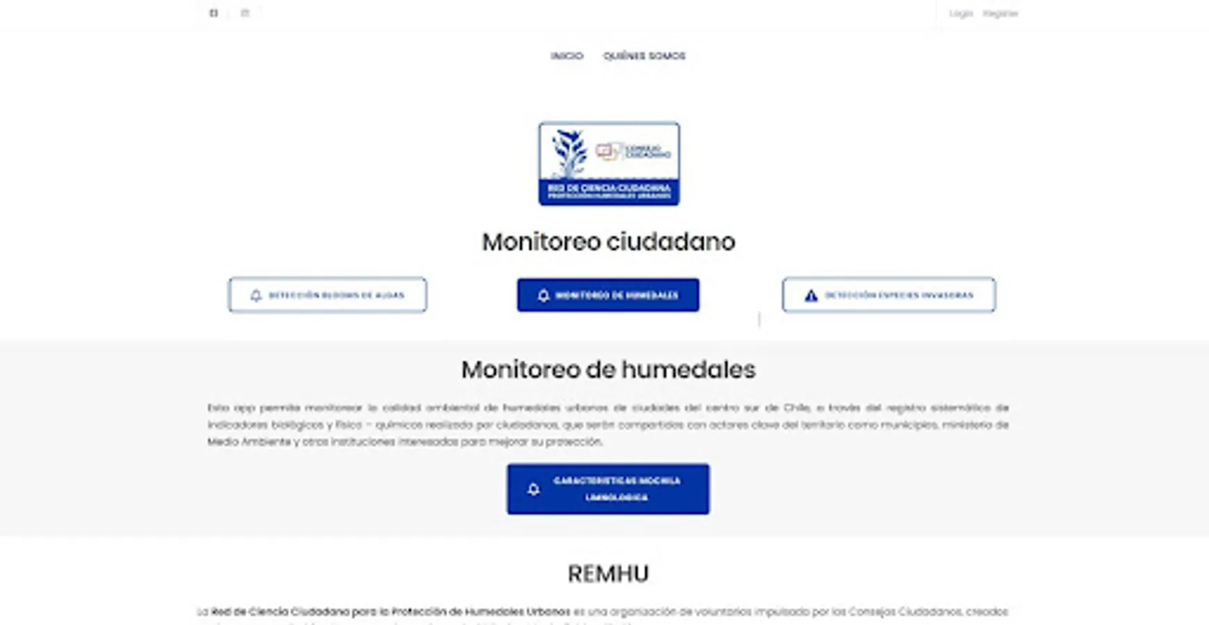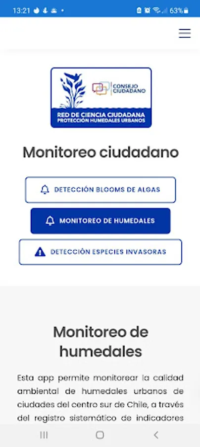 This app allows monitoring the environmental quality of urban wetlands in cities in the center-south of Chile, through the systematic registration of biological and physical-chemical indicators carried out by citizens, which will be shared with key actors in the territory such as municipalities, the Ministry of Environment and other interested institutions to improve their protection.