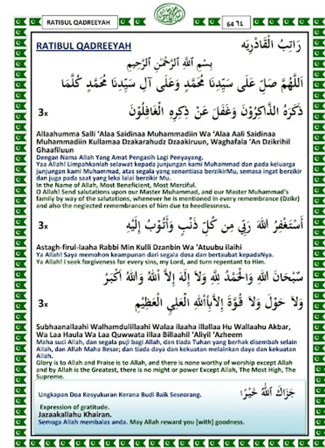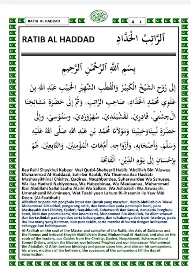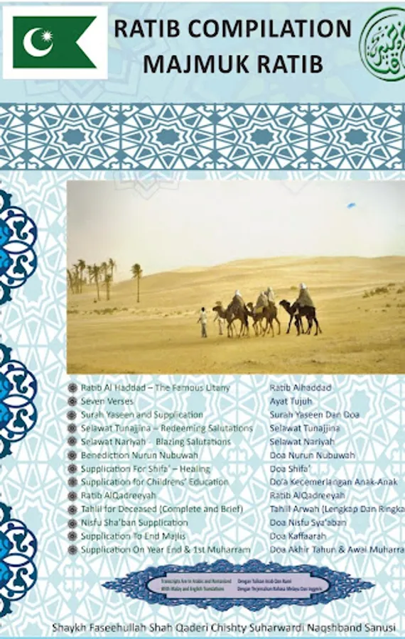 Ratib Compilation is the soft copy of Majmuk Ratib for Ratib Al Haddad, Surah Yaseen, Ratib Al Qadreyah, Tahlil, Doa Nisfu Sha'ban, Year End and 1st Muharram Supplication, Protection Doa from Stroke and Doa Kaffarah etc. It's a very handy e book for everyone who wish to seek Divine help.