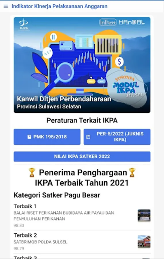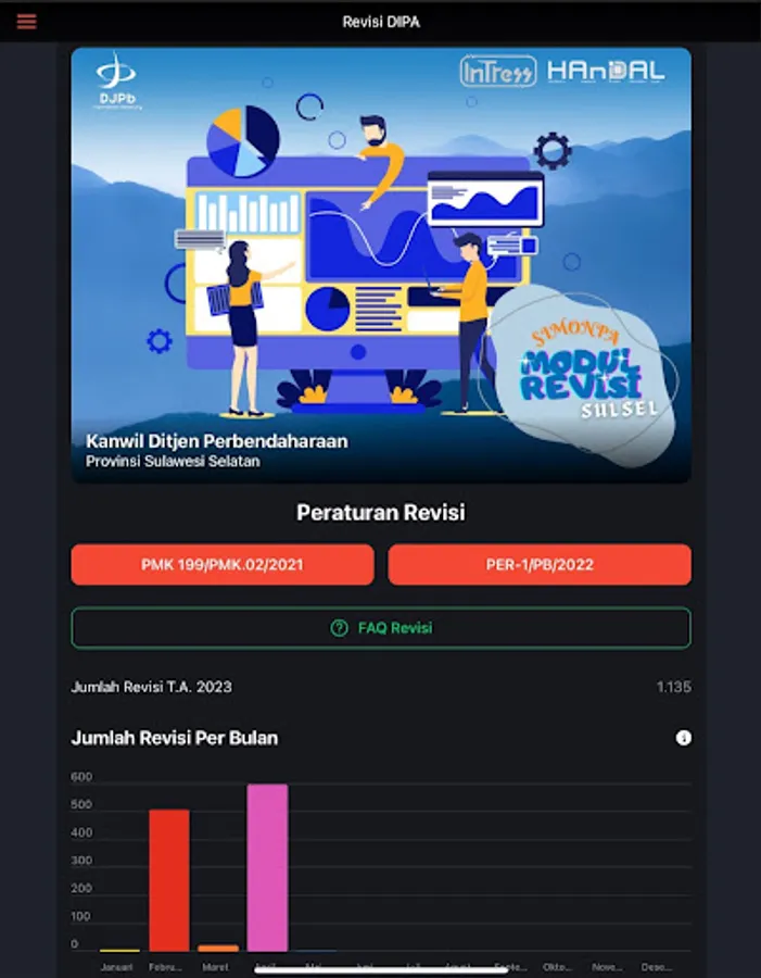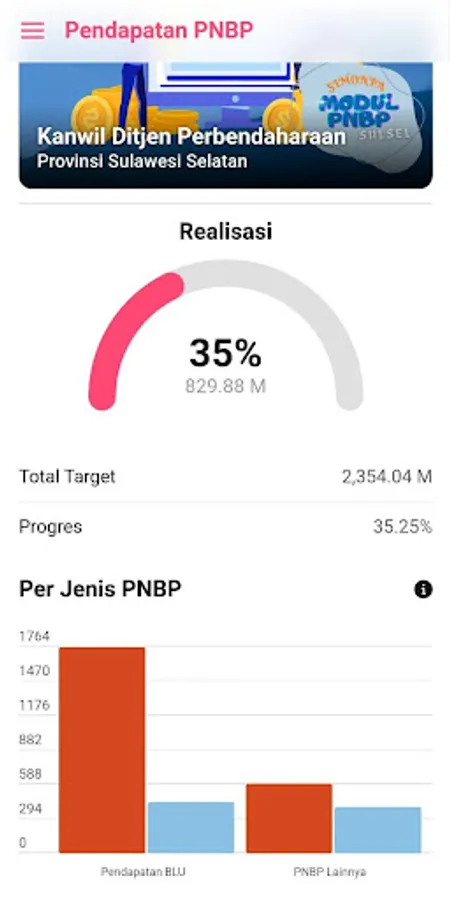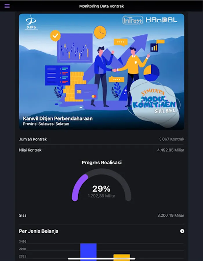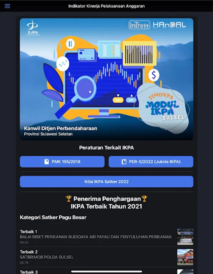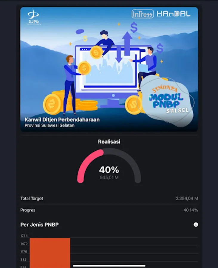 Monitoring tools for the implementation of the APBN in the scope of South Sulawesi Province which include realization of PNBP revenues, realization of expenditures, monitoring of contract data, budget implementation indicators (IKPA) of spending units and revisions of DIPA