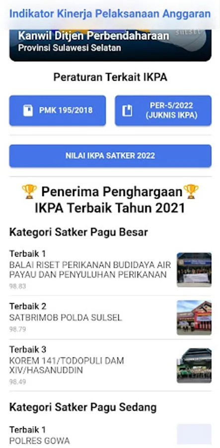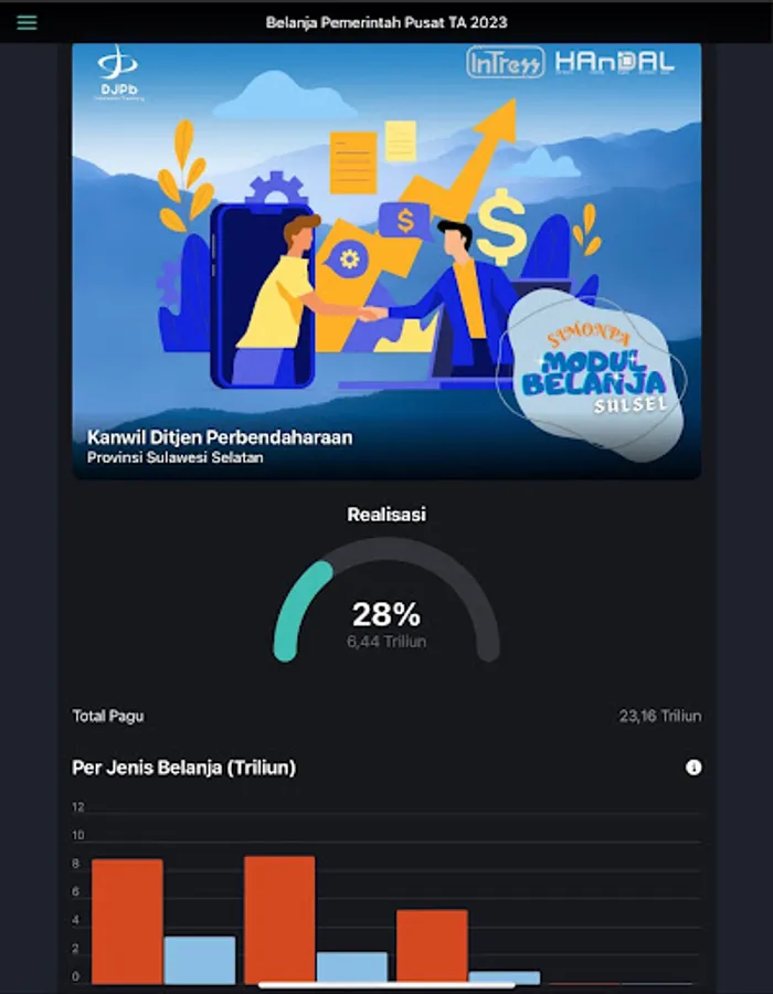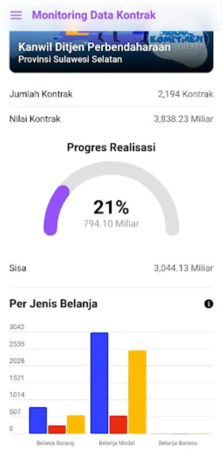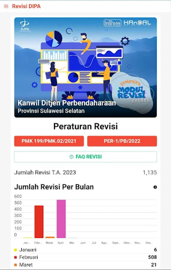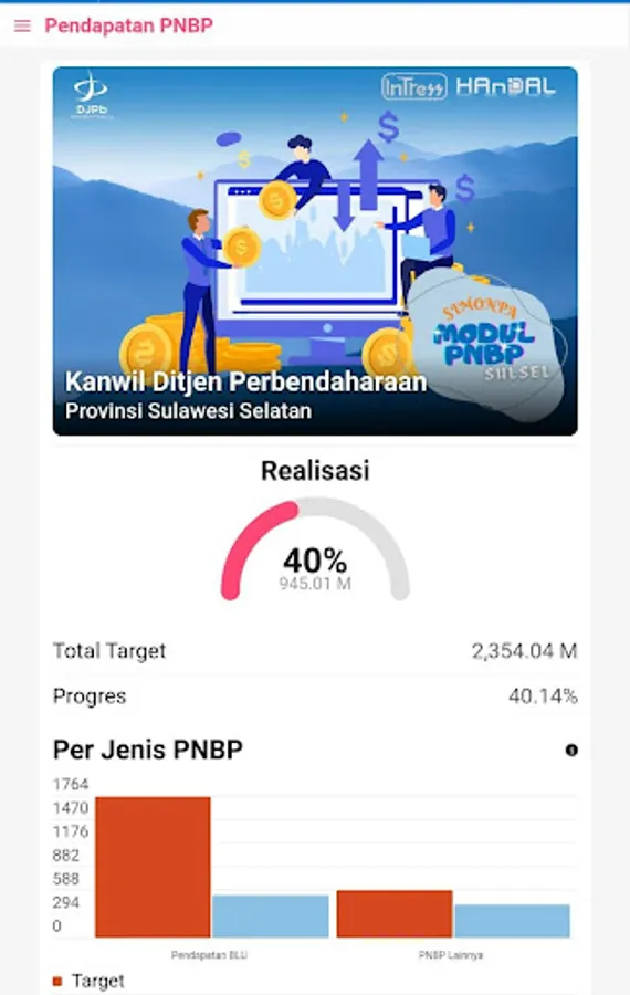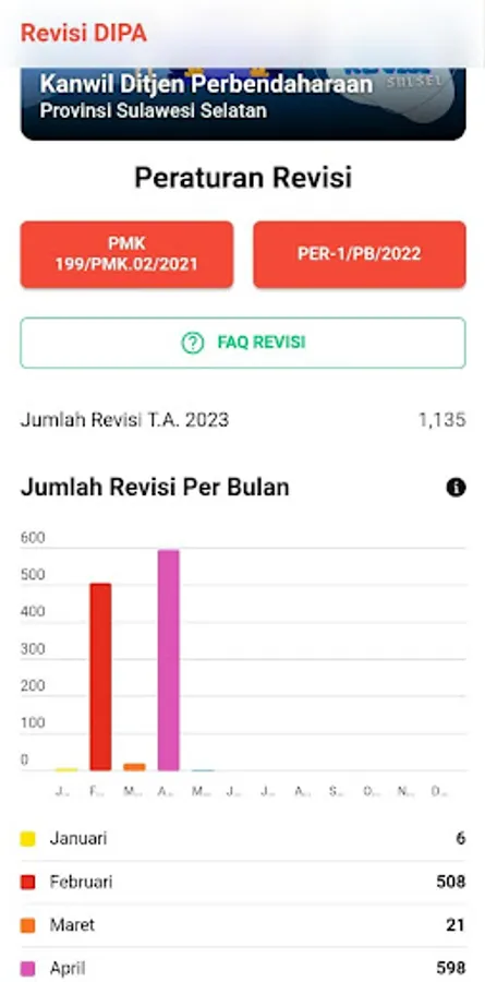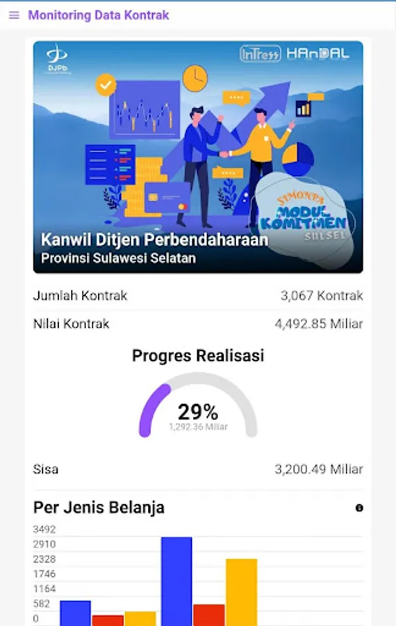 Monitoring tools for the implementation of the APBN in the scope of South Sulawesi Province which include realization of PNBP revenues, realization of expenditures, monitoring of contract data, budget implementation indicators (IKPA) of spending units and revisions of DIPA