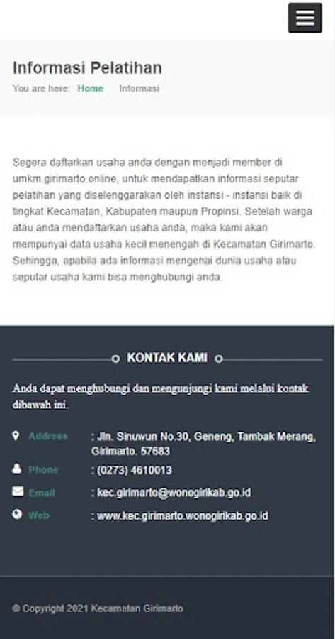 An information system that functions as a data collection, development and marketing tool for MSMEs in Girimarto District. In the system that we have developed, apart from being web-based, it also accommodates a location plan to make it easy to find using a GIS system.