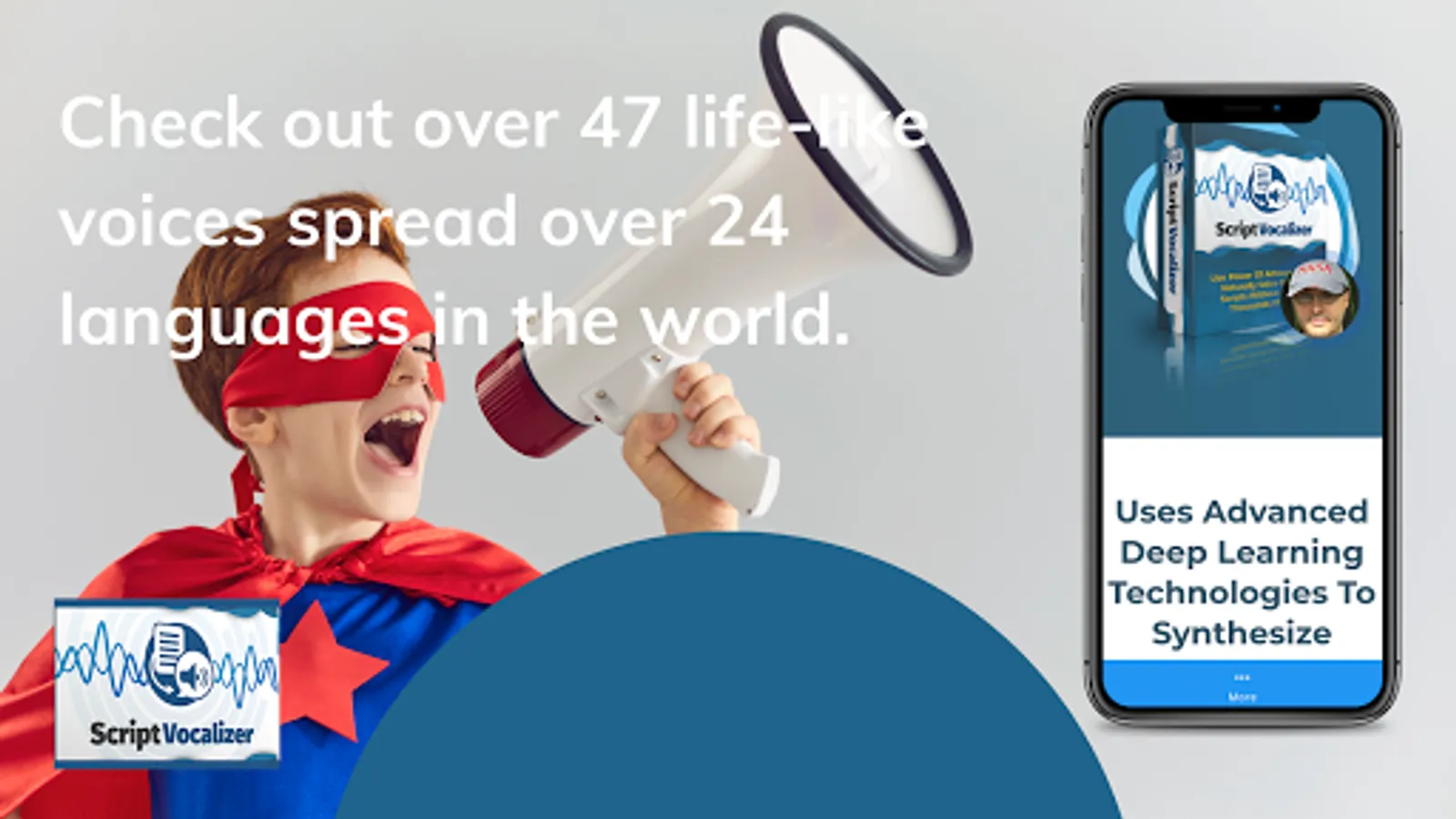 ScriptVocalizer provides dozens of languages and a wide selection of natural-sounding male and female voices. ScriptVocalizer's fluid pronunciation of texts enables you to deliver high-quality voice output perfect for sales letters, explainer videos, video ads, affiliate video reviews, and any other videos.