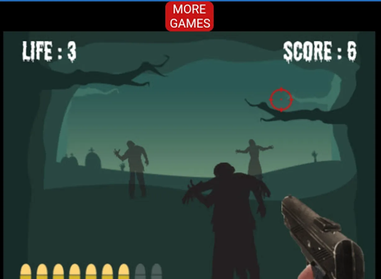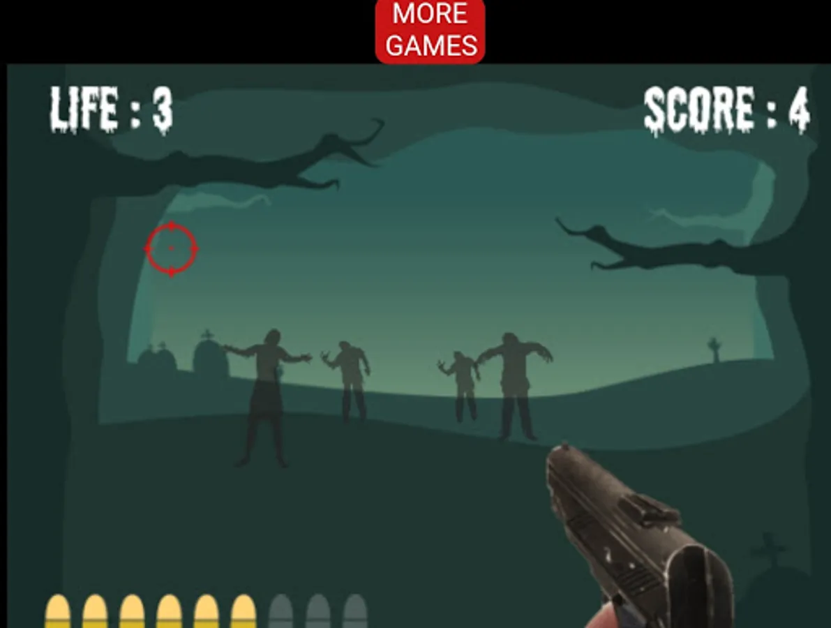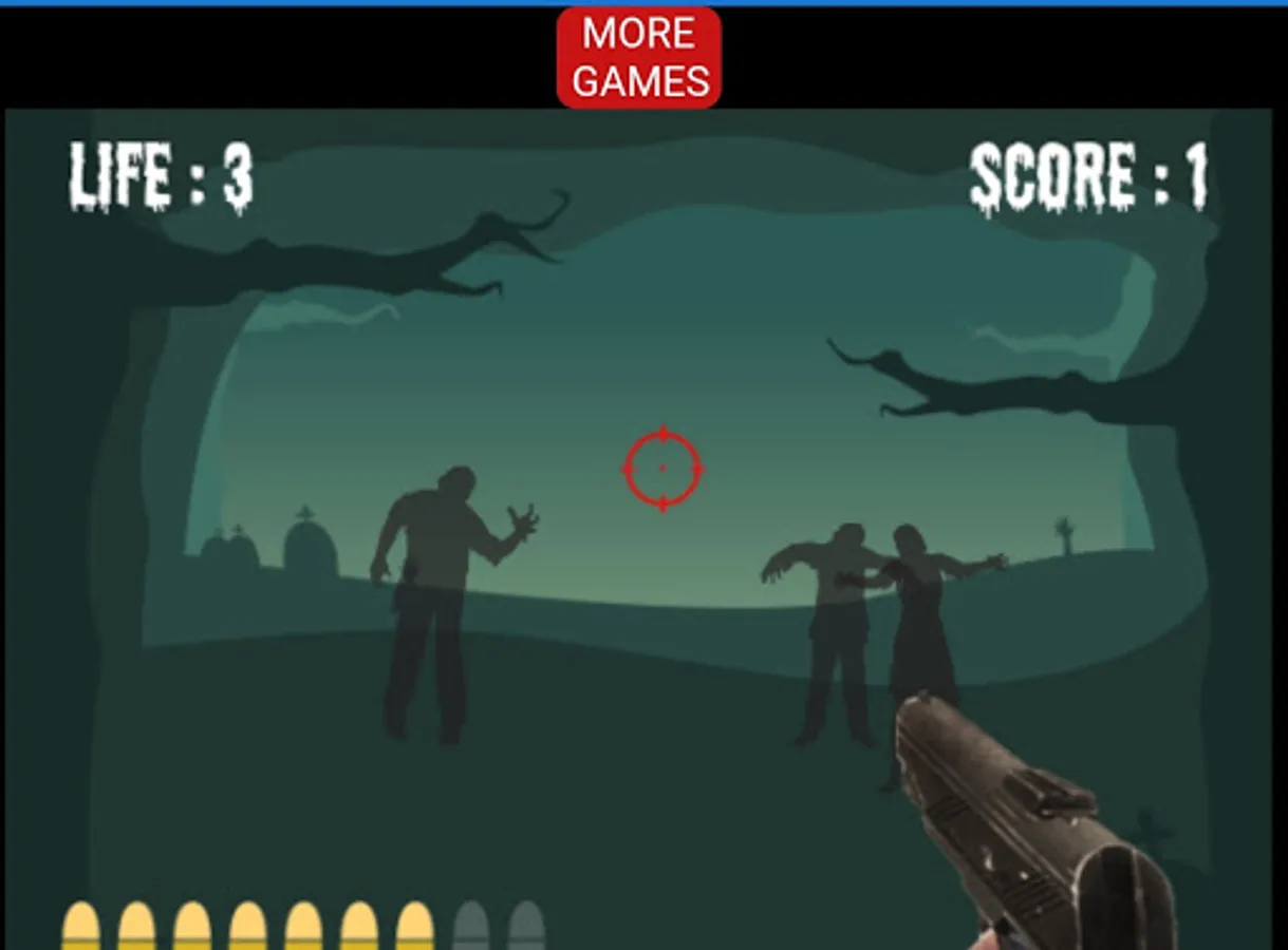 Shoot zombies is a good action game.in this you have to kill zombies.in starting you have to fight with pistol. You have only 3 lives. It is an internet game.