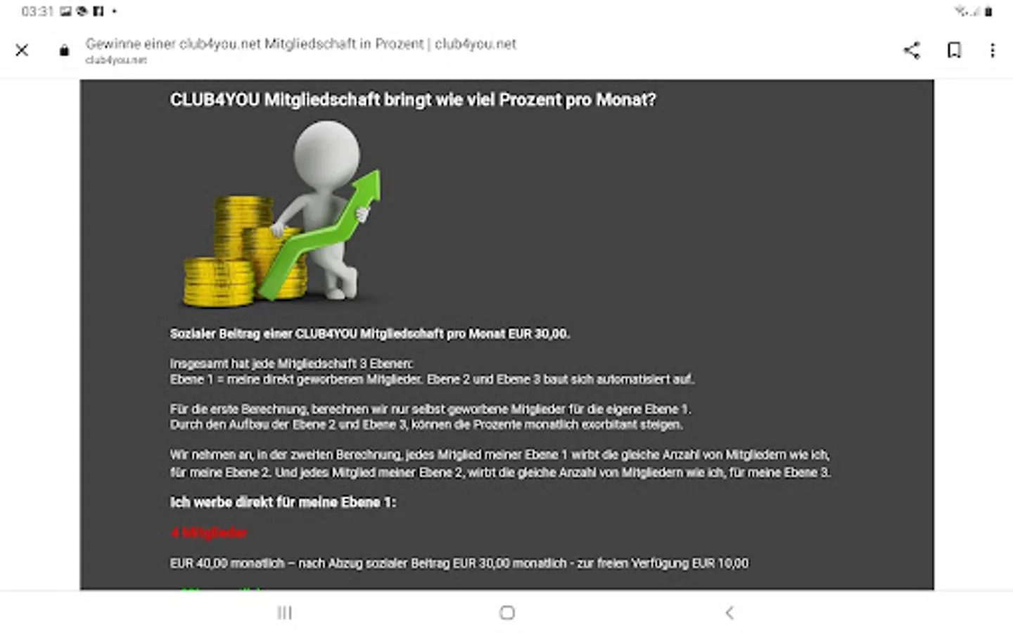 How can Club4You help its members to achieve more financial security and freedom? Sometimes the answers to important questions are easier than you think. It has probably happened to them before. When something is too easy, you just can't believe it and look for the famous "fly in the ointment". Whether it's human nature or our upbringing, that's up to you. How often did we have to be told in childhood that we shouldn't make things so easy for ourselves. We were practically trained to look for the "hair in the soup". But sometimes things are as simple as they look. Club4You is designed so simply that it can be easily integrated into the lives of members and generate the greatest possible benefit. And because the concept is so simple and easy, anyone can easily build it into their lives, build up an additional continuous income and thus get more financial security and freedom.