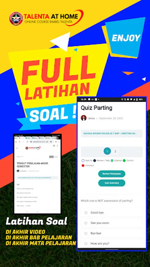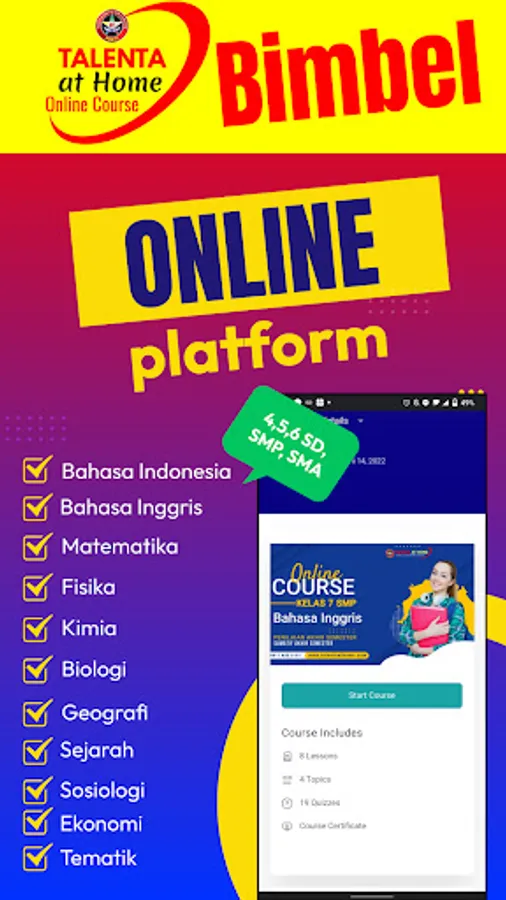 Talenta at Home Online Course is an online tutoring platform specially designed by the Talent Bimbel Great Team and adopted from the world's leading online learning platform.
