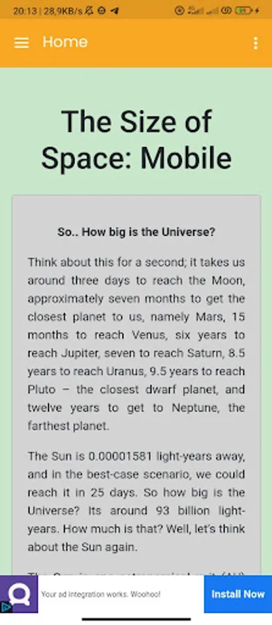 Welcome to "The Size of Space: Mobile"! This app is dedicated to space enthusiasts and science lovers alike. Are you eager to delve deeper into the vastness of the universe? Well, this app is here to guide you!