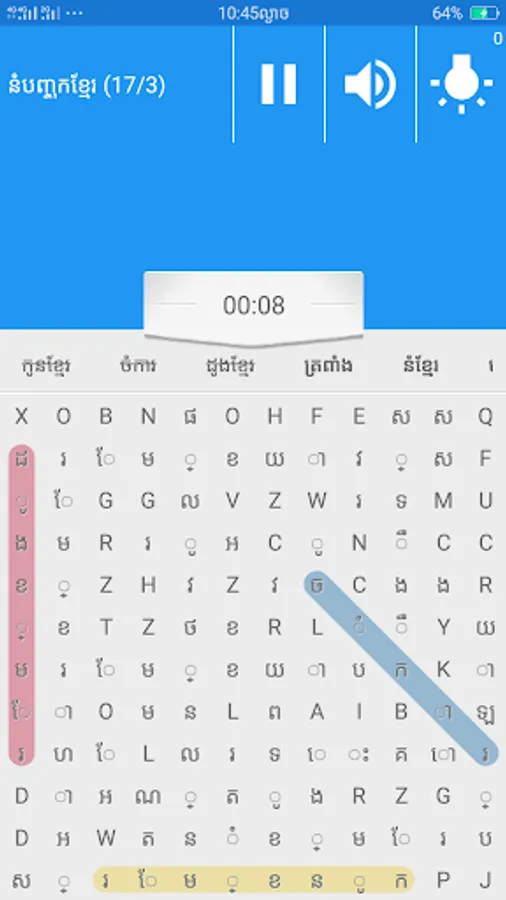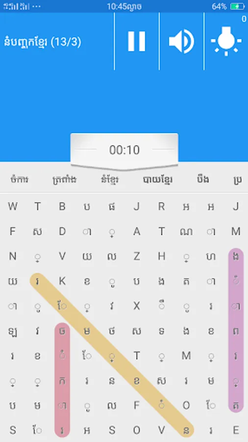 Traditional Khmer food app This is another entertainment app, By searching for the words already displayed at the top, When you find a word, just drag it over and it will swipe and then look for other words until you run out of words.