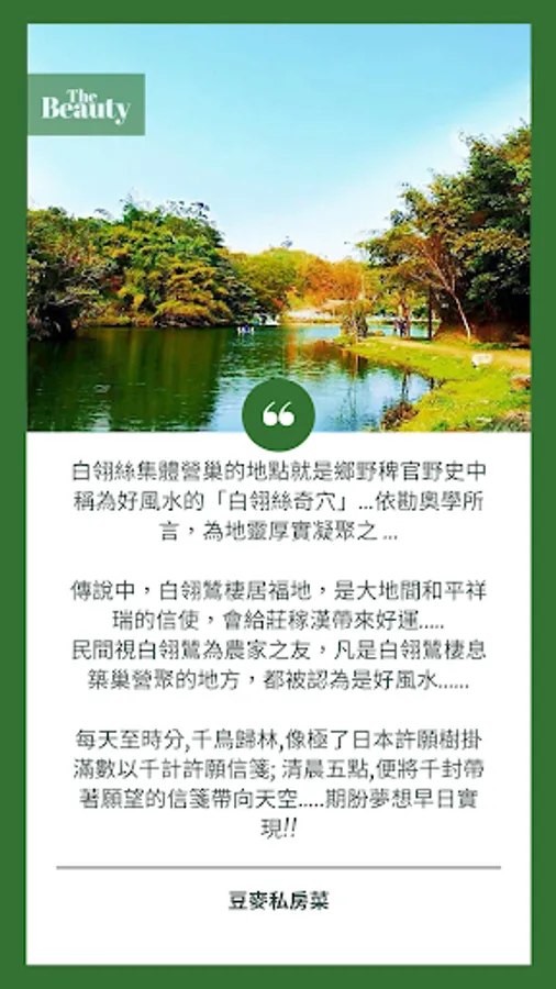 Located on the bustling Taiwan Highway 7, you can see a beautiful green pond when you drive by. You can also enjoy seeing egrets spreading their wings and flying on the lakeside, and seeing thousands of egrets flying in groups. very impressive!