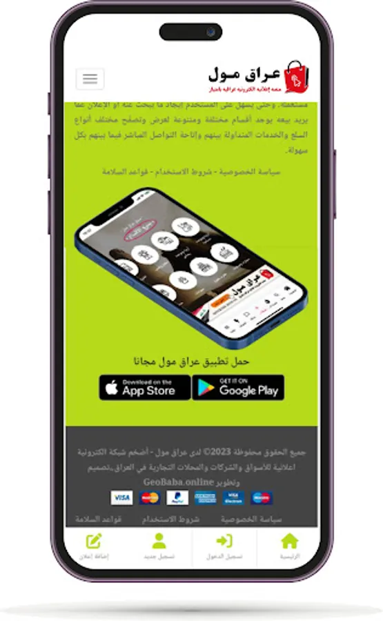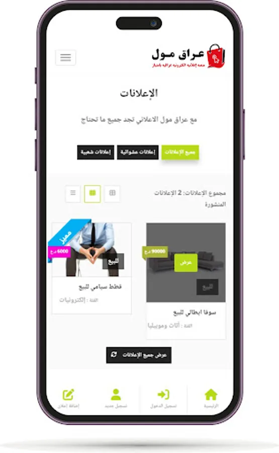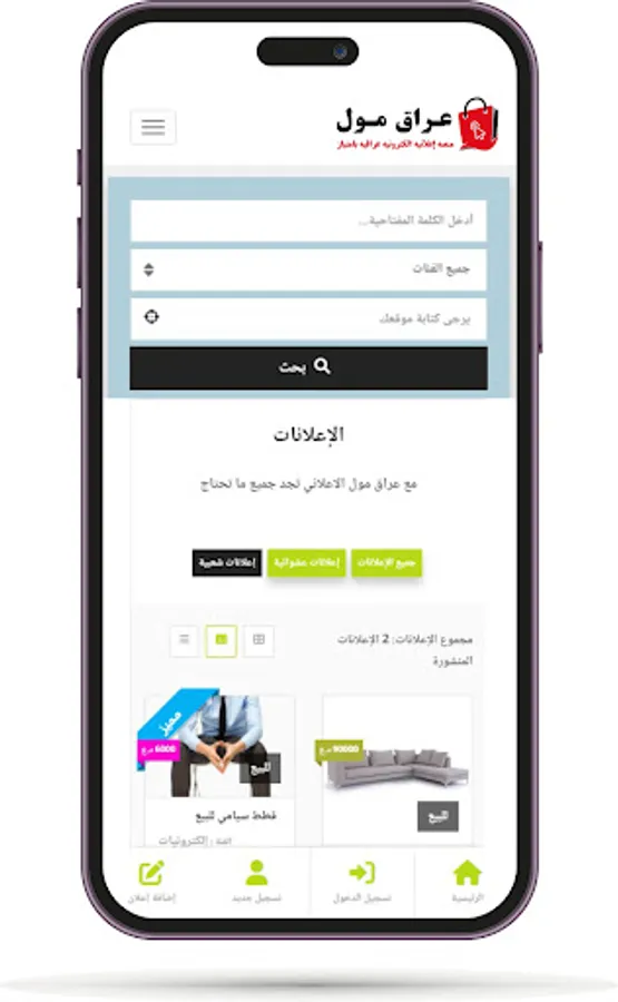 Iraq Mall is one of the most important pioneers of electronic platforms specialized in the field of classified ads, which enables users, whether they are sellers or buyers, to buy and sell various goods, products, and services within the shortest possible time and with minimal effort, whether the condition of those products is new or used. In order to make it easier for the user to find what he is looking for or to advertise what he wants to sell, there are different and varied sections to display and browse the various types of goods and services traded between them, and to allow direct communication between them with ease.
