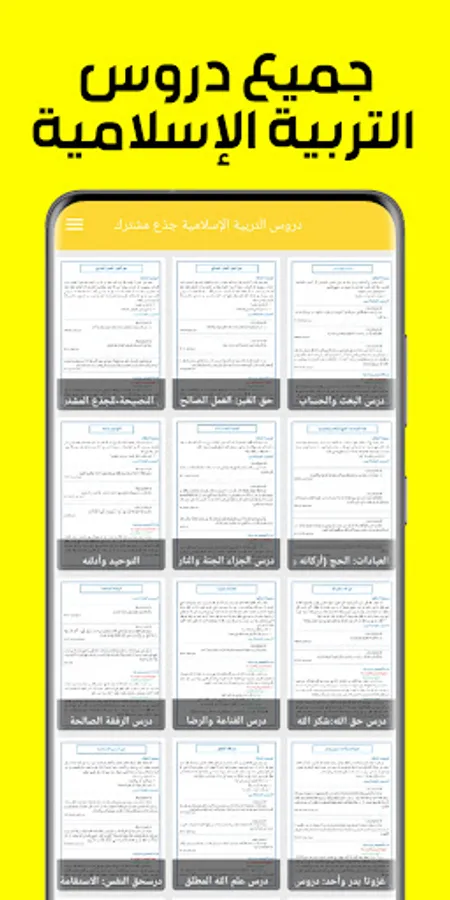 يتضمن التطبيق الخاص بمادة التربية الإسلامية لمستوى الجذع المشترك مجموعة من الدروس المختصرة والمتنوعة التي تغطي محتوى المادة بشكل كامل. تحتوي الدروس على ملخصات لكافة الدروس.
