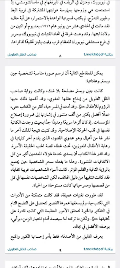 جودي أبوت: وهي فتاة ذكية ومرحة توفي والداها عندما كانت طفلة صغيرة ونشأت في دار للأيتام حيث طورت موهبتها في الكتابة، أحد مقالاتها تلفت انتباه جون سميث (صاحب السيقان الطويلة) وتؤدي إلى حصولها منه على منحة إلى مدرسة لينكولن الثانوية حيث تتعرف هناك على صديقتيها سالي ماكبرايد وجوليا بندلتون
