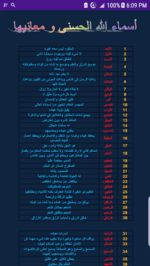 - The beautiful names of Allah with meaning and arranged order from A to Z.