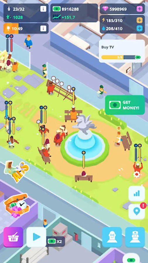 As typical in tycoon games, you begin small: a few wards and some patients. Your mission is to create a healing environment: tend to your patients, feed them, provide clean clothes and showers, and ensure they get enough sleep. It's a breeze with this game's straightforward controls and idle elements. Assist in healing and discharging your patients. The more patients you cure, the more money you make. Remember, your primary goal is not only to help but also to become wealthy.