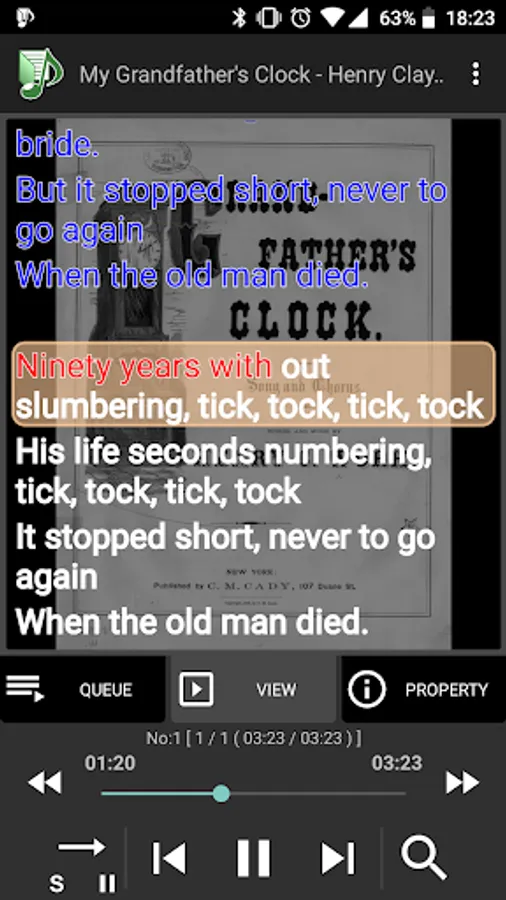 The lyrics automatically scroll to match the playback time.