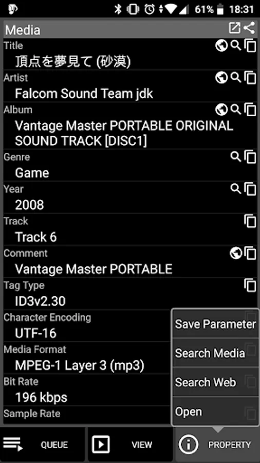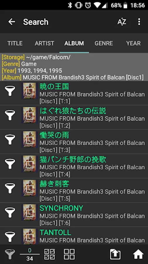 Medoly can search music files by combining a plurality of conditions shown below.