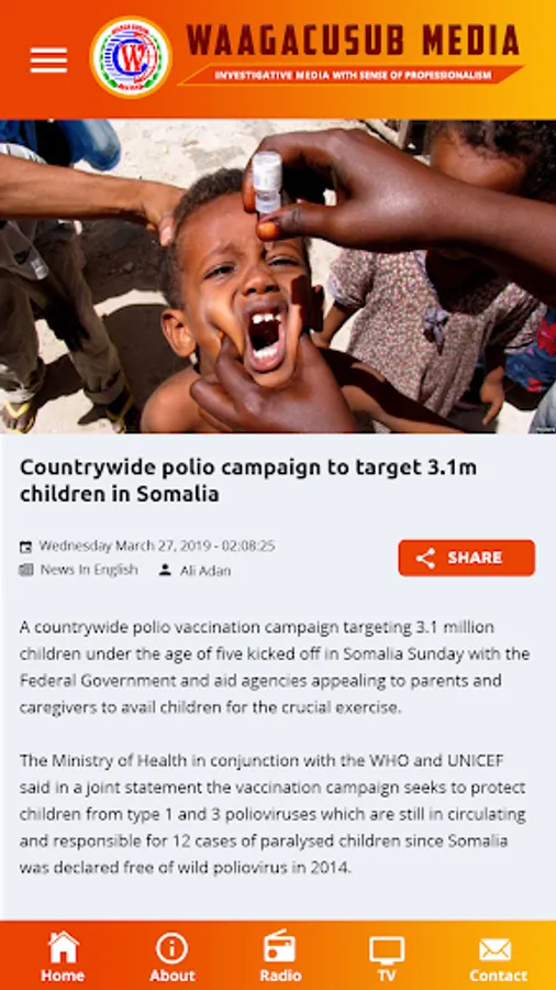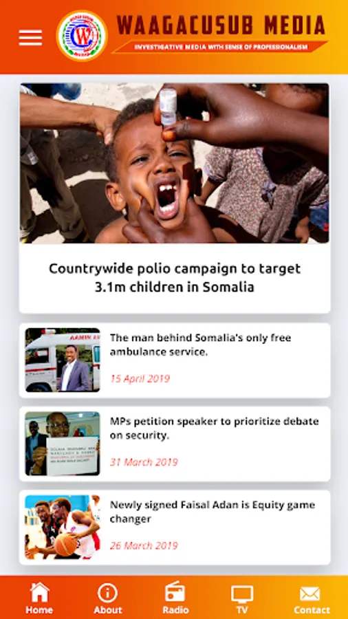 Waagacusub Media is the most trusted source of independent news and information in East Africa. As the definitive source for news, Waagacusub reporting, photography, interactive, audio and video are published and broadcast by Somalia's leading newspapers, TV channels, apps, radio stations, websites, and magazines.