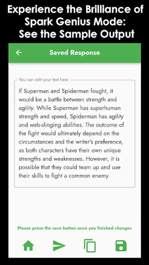 Spark Genius: Need help generating, refining, and executing ideas? With this AI-powered brainstorming tool, you can generate and refine ideas with ease. Whether you're working on a project or trying to come up with your next big idea, this feature will help you unlock your creativity and get results.
