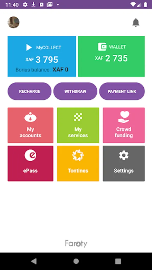 Faroty is a fintech whose services focus on online collection (Tontines, Djangui Aladji, etc.), crowdfunding (for projects and other social cases) and ePass (the ticket distribution / reservation service) . Faroty is also the link to access several other local services. With a single account, you can benefit to all our services which also include mobile money and other international payments.