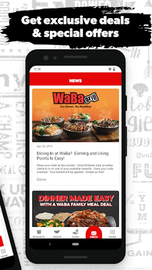 * JOIN WABA REWARDS: Earn points on qualifying purchases by ordering through the app or scanning your in-store QR code.