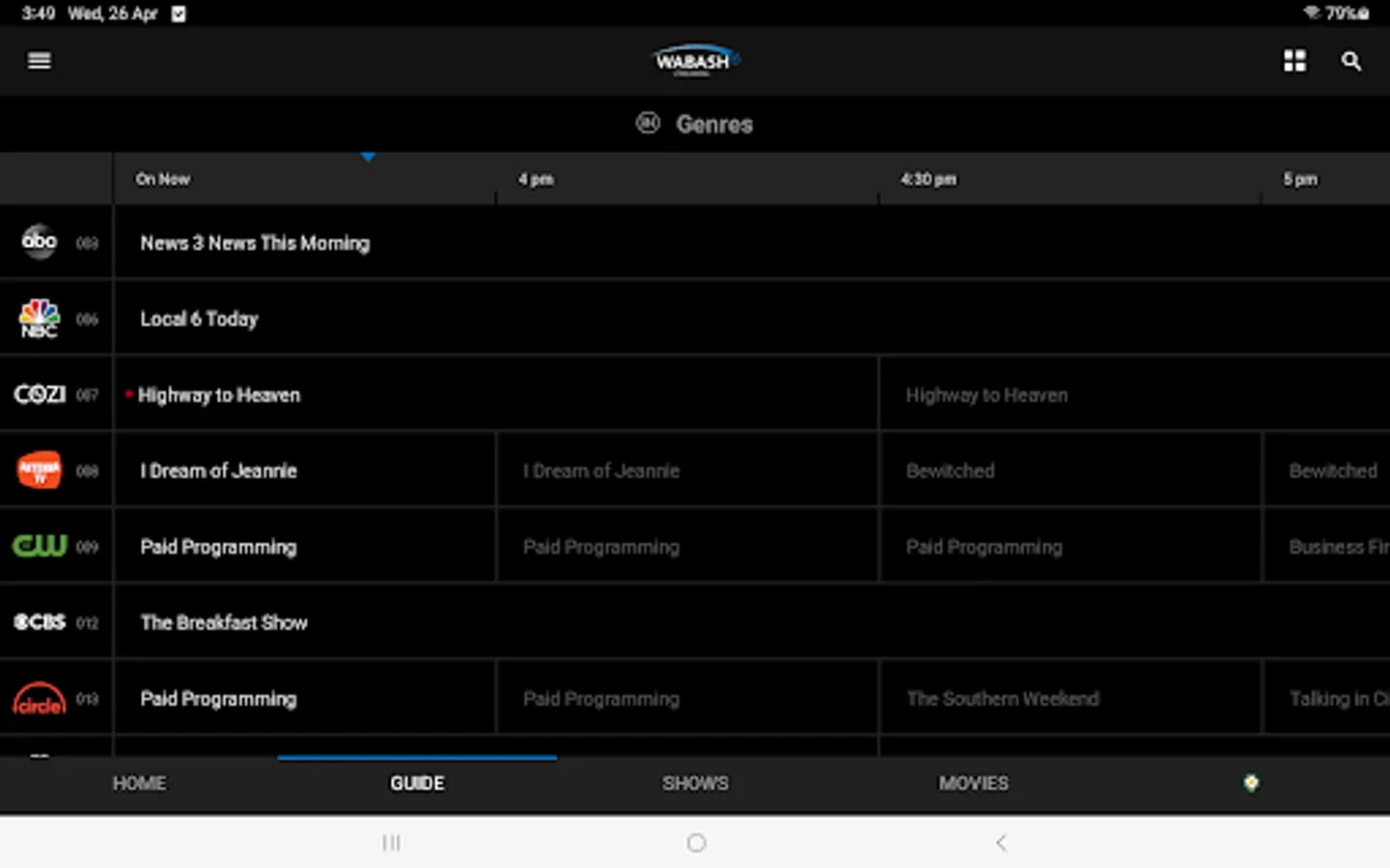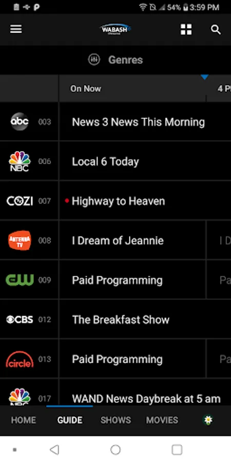 Streaming television content available to Wabash Internet Customers.