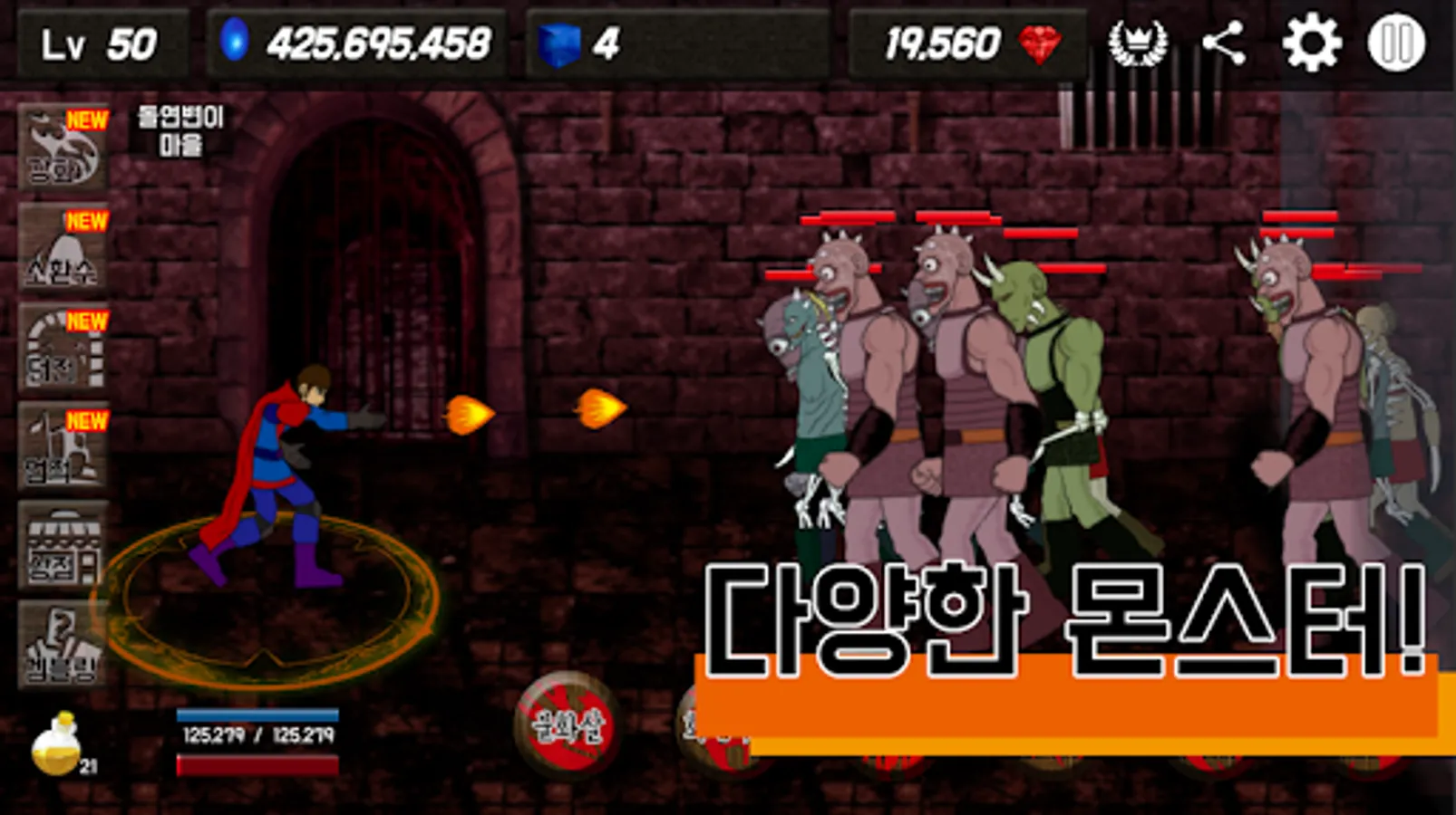 Throw a variety of fireballs to defeat the various monsters on the way!