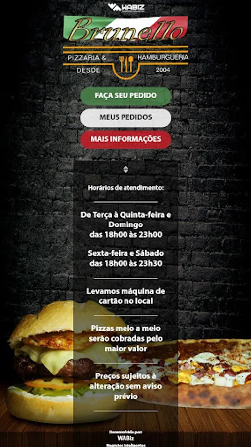A gastronomic merge Pizzeria and Hamburgueria that appeals all public, especially the most demanding.