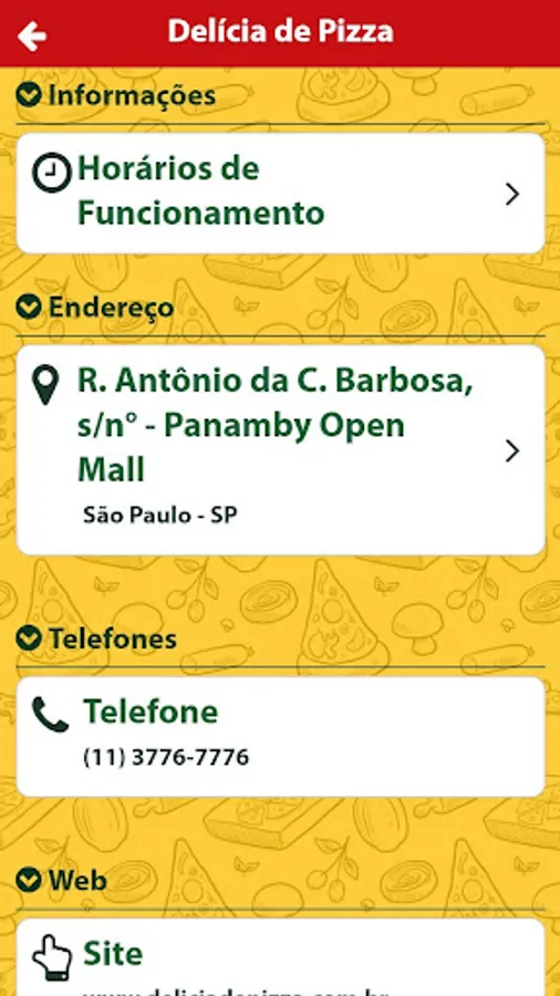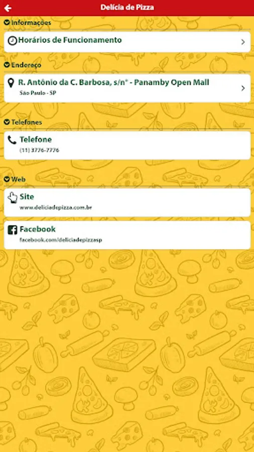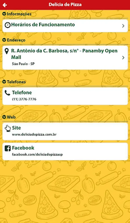 Delícia Panamby was created to satisfy your desire to eat a warm and tasty pizza. We elaborate our pizzas with top quality ingredients, to guarantee the final result even lighter and crisper. We offer a wide variety of flavors, totaling more than 60 kinds of salty and sweet pizzas that leave anyone with mouth watering.