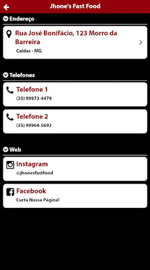 Address: Rua José Bonifácio, 123 Morro da Barreira - Caldas / MG