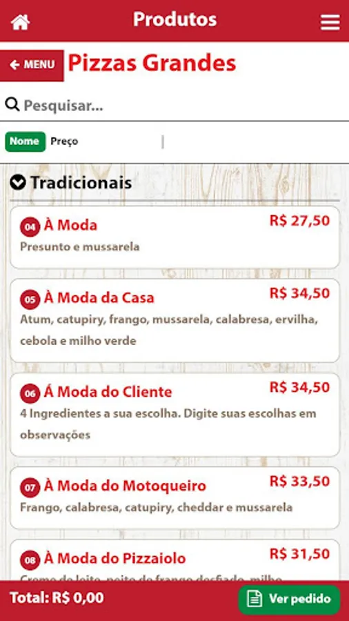 - Merely illustrative images. The values on the menu may change without prior notice.